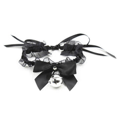 SM Sex Props Polyester Braided Belt Black Bow Bell Collar